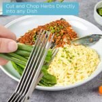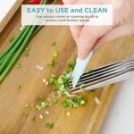 Cutting herbs and leafy vegetables quicker and easier, it is a 5 blades scissors, 5 times faster then other kitchen scissors.Cutting herbs and salad leafy vegetables to all uniform in size, without tearing or bruising, looks more pretty. HERBS / COOKING/ SALAD lover will love this gift so much. Directly cut herbs on pasta, salad, soup, meat, chicken, pizza, no more cleaning knife and cutting boards, nice tool for kitchen and camping. Best for basil, lettuce, green onion, parsley, mint, coriander, rosemary, leek, celery, chili, seaweed and all leafy vegetables.Our herb scissors is much faster, easier, safer than knife, scraper, slicer.