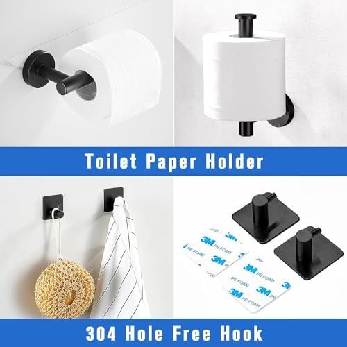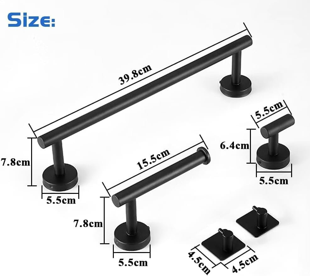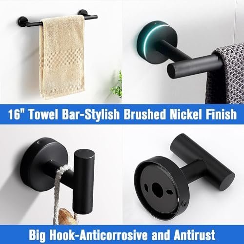 5 PIECE SET- Bathroom Hardware Set Includes 16 inch towel rack, toilet paper holder and 3 multi-function Robe Towel Hooks. This perfect towel bar set won’t let any product go unused. This bathroom set will meet all the needs in your life and more importantly match any home decor and style.