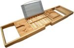 PERFECTLY SPACIOUS FOR TWO. This bamboo bathtub tray is perfectly designed to fit most bathtub sizes. Have everything you need right there with you from a wine glass slot to soap/towel holders. You can even use it to hold your laptop, iPad!