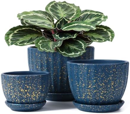 MODERN PLANTER : These garden plant pots are made of ceramic and come in three sizes: Medium width is 5.5 inches, Small width is 4.4 inches, and nimi width is 3.4 inches. They are fired at high temperature, so they are durable and lightweight.