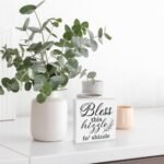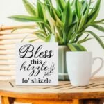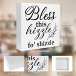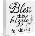 Creoate Bless This Hizzle for Shizzle Box Signs Desk Decor, White Inspirational Wooden Block Sign Shelf Desk Decorations Farmhouse Home Décor Accents Dining Room Living Room Desk Table Decor, Housewarming Gift