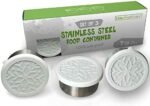 SMART & HEALTHY Option For Baby Snack Food To Go Set Of 3 Containers, Perfect For Kids School Containers, Snack Containers For Kids & Adults, also for Travel, Gym, Work, Outdoors, Camping To Go Meal. NOT A TINY CONTAINER. 7 oz Perfect Containers To Carry Your Favorite Meals, Any Sauce, Fresh Fruits Stainless Steel Containers, Perfect For Fresh Vegetables, Dice Cheese, Salad Dressing, Meal Prep Containers, Salad Keeper, Sauce Containers, Leak Proof Condiment Containers, Fit on Bento Lunch Boxes, Dacha Mia Containers are 100% leak Proof and doesn’t Corrode. Dacha Mia Round Stainless Steel Food Containers are 100% Recyclable . A HIGH QUALITY Containers Perfect For Storage Your Left Over Meals. The Beautiful White Snowflake design Are Stylish And Make Your Fridge Look Clean and Organized , Dacha Mia are BPA Free, LIGHTWEIGHT & DURABLE, Easy To Clean, Toddlers Love To Finger Their Food With Dacha Mia Stainless Steel Food Storage Containers, Made With Naturals Materials A Excellent Metal Lunch Containers.