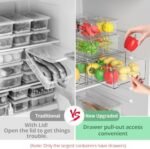 ✅【ENHANCED ANTI-SLIP AND DRAWER DESIGN】Our refrigerator organizer set improved anti-slip design ensures that the refrigerator drawers stay securely in place while opening or closing. These convenient pull-out drawers make it easy to access your go-to ingredients, such as onions, garlic, and vegetables, making meal preparation a breeze. Simplify and streamline your kitchen organization with our user-friendly design.