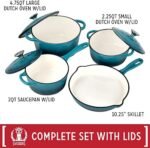 INCLUDES – 10.25” Skillet, 2QT Saucepan with Lid, 2.25QT Small Dutch Oven with Lid, 4.75QT Large Dutch Oven with Lid