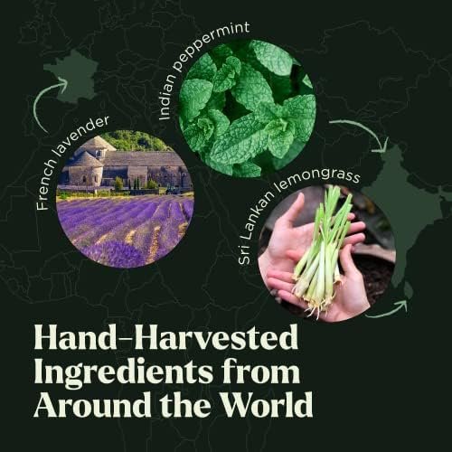Plant-powered ingredients from around the world: Our team brings you the purest tea tree essential oil from Australia, eucalyptus from China, lavender from France, orange oil from Brazil, and peppermint and lemongrass from India.