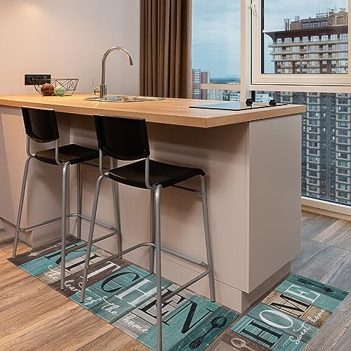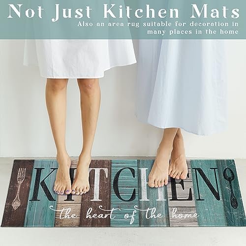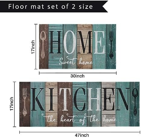 Durable & Non-Slip Rugs Set of 2: High-quality material, the surface of this teal rug is crystal velvet fabric, a comfortable and soft standing mat for kitchen, the bottom is lined with rubber non slip point, reducing the chance of slipping. Kitchen rugs farmhouse style, Nice vintage and rustic decor for kitchen.
