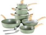 Toxin-free Cooking Set – When buying a new set, make sure that it clearly indicates that it is lead, PFOS, PFOA-free. These are the three things that you don’t want to have in your cookware because of their potential health dangers. Fortunately, you can get granite cookware that are free of these harmful chemicals. For more healthy & Eco-freiendly.