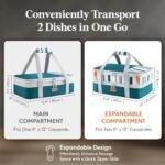 Leakproof: Our casserole dish carrier with lid is crafted from hot-pressed leak-proof aluminum foil, which prevents leaks and spills while perfectly maintaining food temperature. It is also effortlessly easy to clean, making it perfect for on-the-go use.